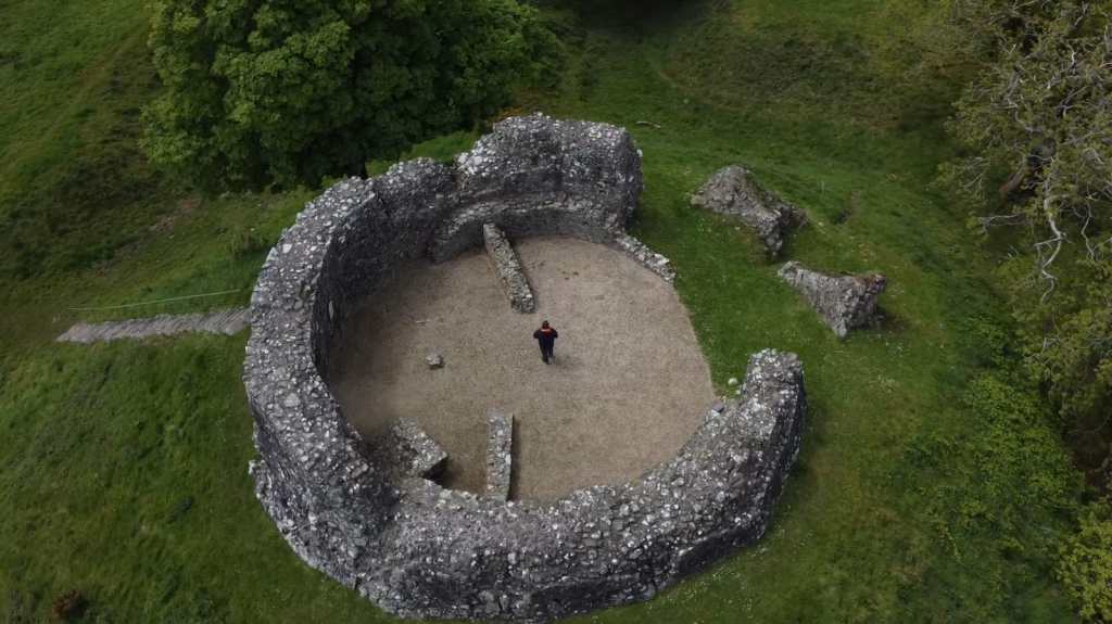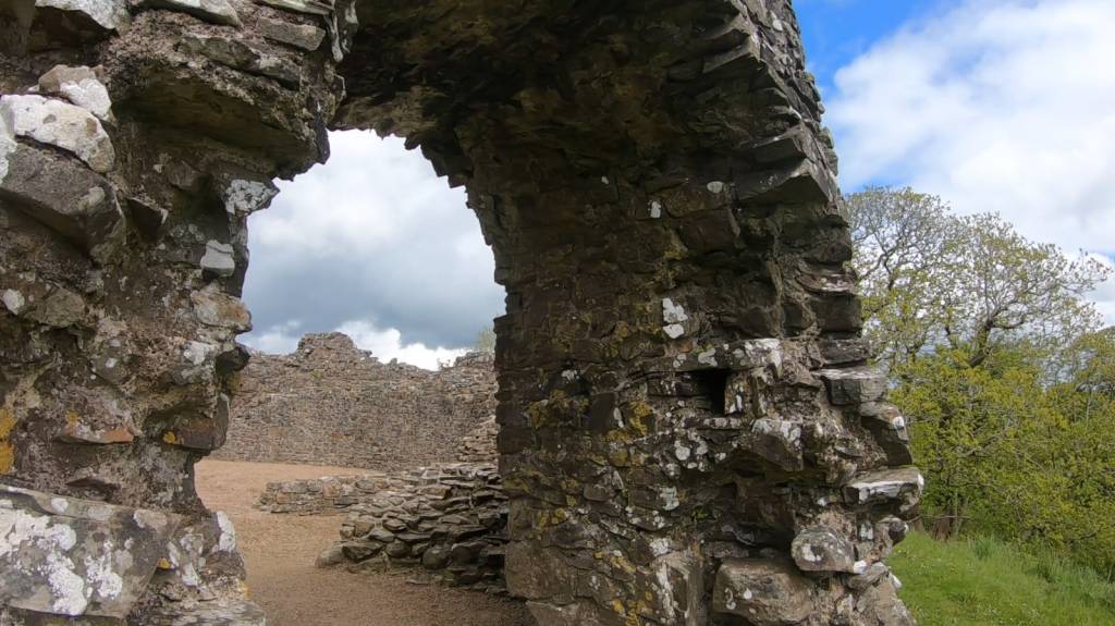 It was originally built from earth and timber and also earth ramparts that exist since the iron age. Many rebuilds later in 1220, wooden fortifications of the motte were reconstructed into a 16 sided stone wall which is the shell keep. It closed an inner courtyard with a semi-circular gate portal on the south side an on either side of this you’ll see draw bar holes which would have been used to secure the gate. Some of the internal buildings remain as damaged rubble ruins but it is difficult to make out just exactly what room is what but also great to think about too.