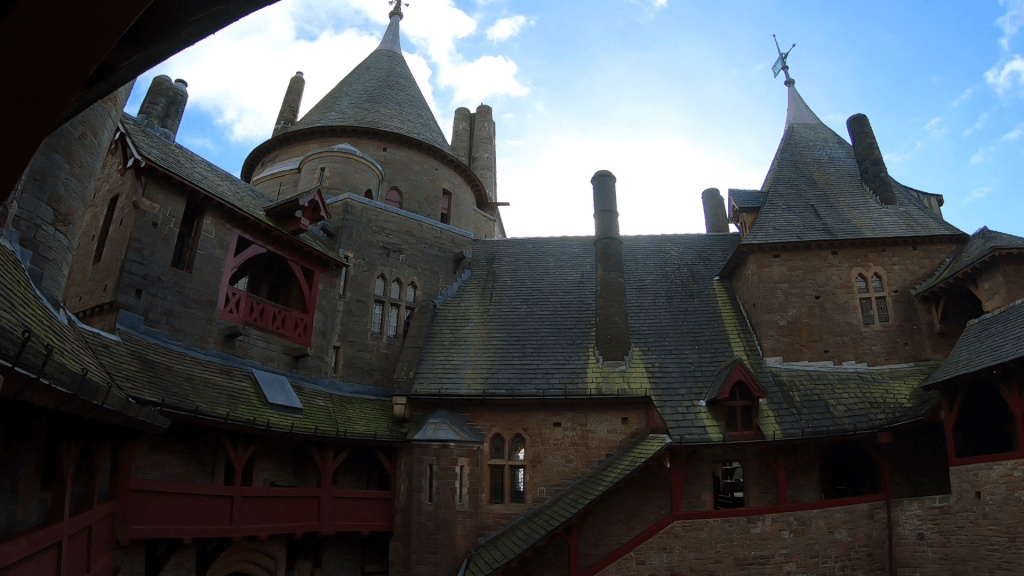 Today we were so excited to be able to explore the famous Castell Coch, the drive here is just north of Cardiff; you can actually spot the castle up in the vast woodlands as you are driving down the M4 with its cylindrical turrets and pointed rooftops, this castle is worthy of the Disney characters Rapunzel or Sleeping Beauty. We were delighted to get the chance to explore here and discover the lavish interiors inside. Join us as we discover who built this fairy-tale folly and find out more about how it got its iconic design and why it’s one of Wales’s most visited castles.