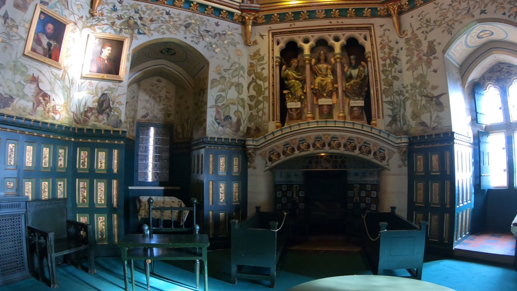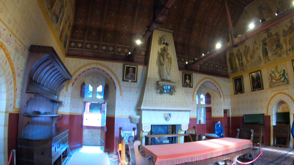 The gothic banqueting hall occupied the first floor of the hall block and features high stencilled ceilings and colourful murals depicting a medieval theme throughout as you look at the chimney in the room you will be able to see the statue of Lucius of Britain, who was a supposed 2nd century King of the Britons, this is incredible to see up close if you get the opportunity and its important that you take the time looking at the different paintings and photographs here as they really do help paint the story of the people who once lived and dined here. And if you peer out of the windows, you’ll find amazing views of the forest beyond and you can see towards Cardiff!