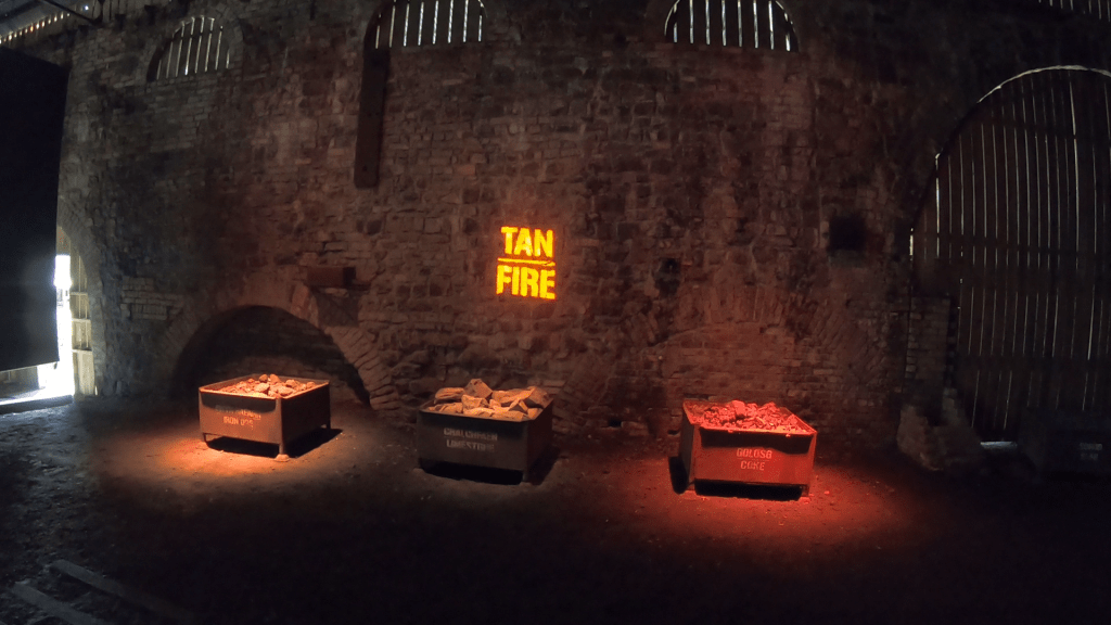 These stone towers were built to withstand some serious heat especially when considering the air pipes adding to that heat and they would typically reach a piping hot temperature of 1,600 degrees Celsius, the blast furnaces are charged with iron ore and charcoal made from coal and limestone, the air would then blast at the bottom of the furnace and the calcium in the limestone will combine with the silicates to form what’s known as slag. Liquid iron is then collected at the bottom of the furnace and it’s let out to flow and cool, once cooled down into a bed of sand the metal is known as pig iron. The low walls in the front mark the former cast houses where the hot molten iron ran out and was often taken away in wagons on the rail tracks lines around the site.
