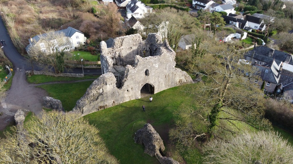 Further south of Paxton we headed towards Cowbridge where a small castle ruin lays. It stands on a rocky outcrop above the river and originally would have been a similar earthwork enclosure which was built by Herbert de St Quintin. then towards the end of the 12th century a strong stone keep was added inside the earthworks and in the 14th century the gatehouse was added to which is likened to the gatehouses built by Gilberts father at Caerphilly and by King Edward 1st at his castles in north wales for their iconic design. The castle was defended by a pair of strong towers with flanking guard chambers that each had four arrow loops so that enemies would be struck first, although some of them were altered in the 15th century as the gatehouse was turned into a prison, Two further towers were then built at the eastern side of the site, it’s said that these defences may have been the work of the de Clare family.