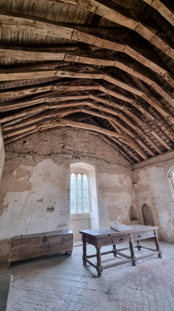 Just off the chamber is the priors chapel, this room was both a religious building that was devoted to worship but also a badge of rank. Again, its lavish decoration was very elegant and showed of the wealth of the priory, but it was also very similar to the chapels of royal palaces and castles. The chapel contained numerous fragments of painted decoration with tiny patches of clothing, a crown and stars with gold. The fireplace and the windows are so interesting to see and it’s just so beautiful and nice to see these buildings still very much in great condition.
