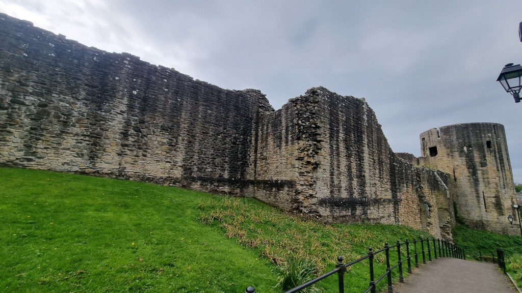 After walking through the quiet orchard and the castles sensory garden, we have a look at some flowers that are planted ready for the summer and we make our way across the now modern bridge between the town ward and the middle ward. It replaces the original bridge that stood here. It’s here you really get to see and visualise this once great fortress. Heading across the south west of the middle ward are the stunning remains of the constables tower.