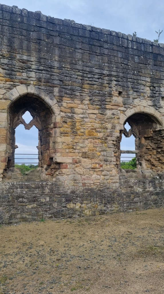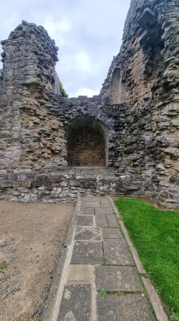 But now, as we wander the remains, the first outline we see is from the west range, this part of the castle is unexcavated but they have documented that they are from the 14th century, it seems to have contained a number of offices and apartment buildings as well as the kitchens, which were probably at it’s north end, it’s thought that from here in these kitchens the food would have been taken to a serving hatch in the south east wall of the Mortham tower, where it would have been conveyed to the great hall, keeping it under cover and hidden.