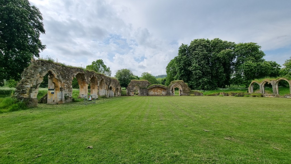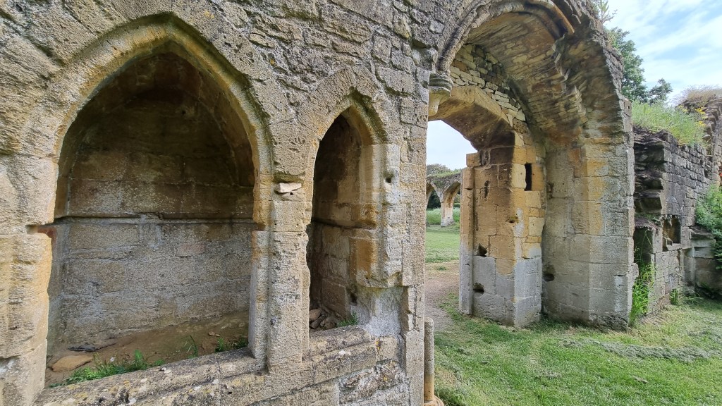 More of the buildings in the area are now part of the south range and heavily ruined. Although only parts of the façade stand at first floor level. We walk past whats known as the laver, which was in the middle of the warming room and the entrance to the refectory which we just visited. The laver was were the monks would wash their hands before they ate their food and the occasional spot where the abbot had his feet washed by one of his people, re-enacting Christs washing of the feet of his displaces and an act of love towards one another. The style of the archway is super interesting to look at in how ornamental and elegant the tracery is.