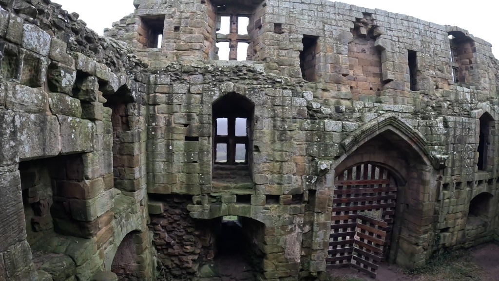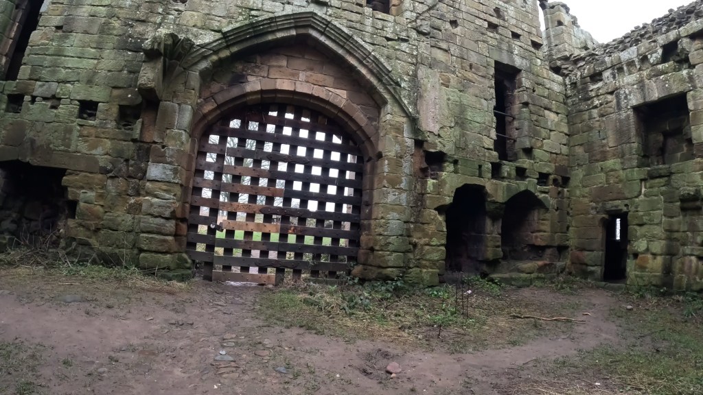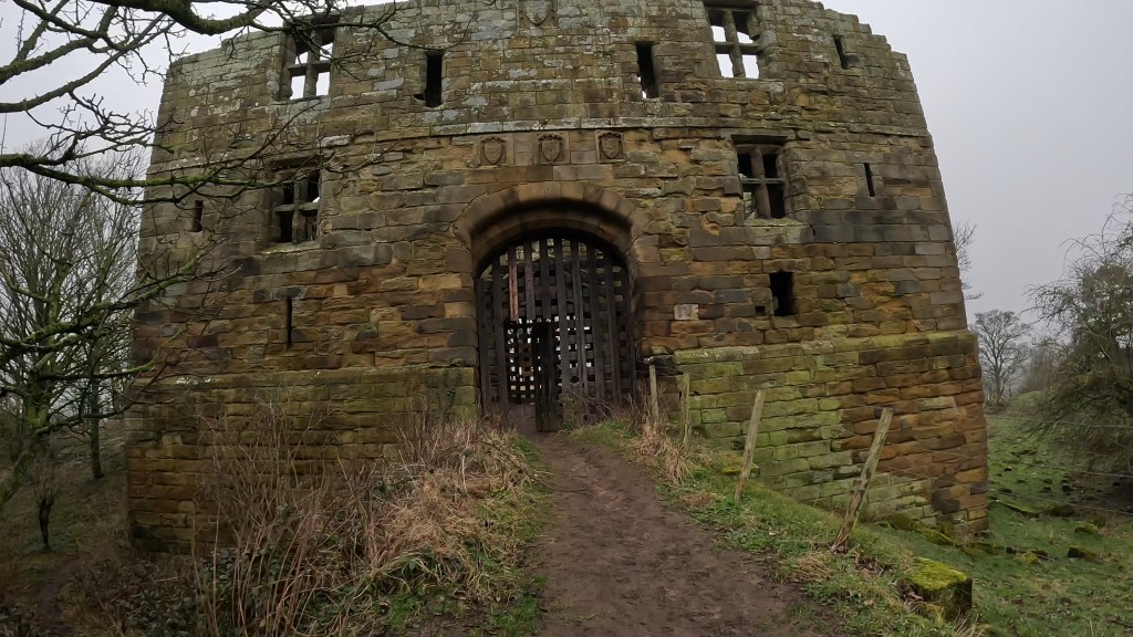 After a short visit to the quiet and eerie church, we wander 2 minutes towards Whorlton Castle, it’s is a ruined 14th-century tower house on the site of a Norman motte and bailey fortification, built on a spur of the Cleveland Hills. Only the castle gatehouse and the vaulted undercroft of the tower house remain. Perched upon a small hill, providing views out across the Tees Valley, the location was an ideal spot for keeping the Saxons in check, as it also overlooked an important road on the western edge of the North Yorkshire Moors. This vantage point must have been very beneficial in times past for it provides wide views over the surrounding countryside, ideal for raising early alerts of impending raids.