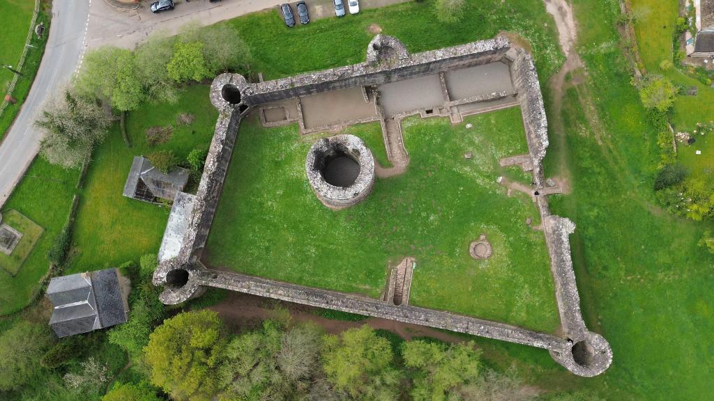 Skenfrith was founded by Norman lord William Fitz-Osbern in the early 12th century, The castle’s well-preserved walls surround a circular keep and Skenfrith is built on an earthen mound. This sturdy structure was a last line of defence should the castle fall under attack. It was built of timber, and stood atop a man-made mound, made necessary because the castle site lies on level ground beside the River.