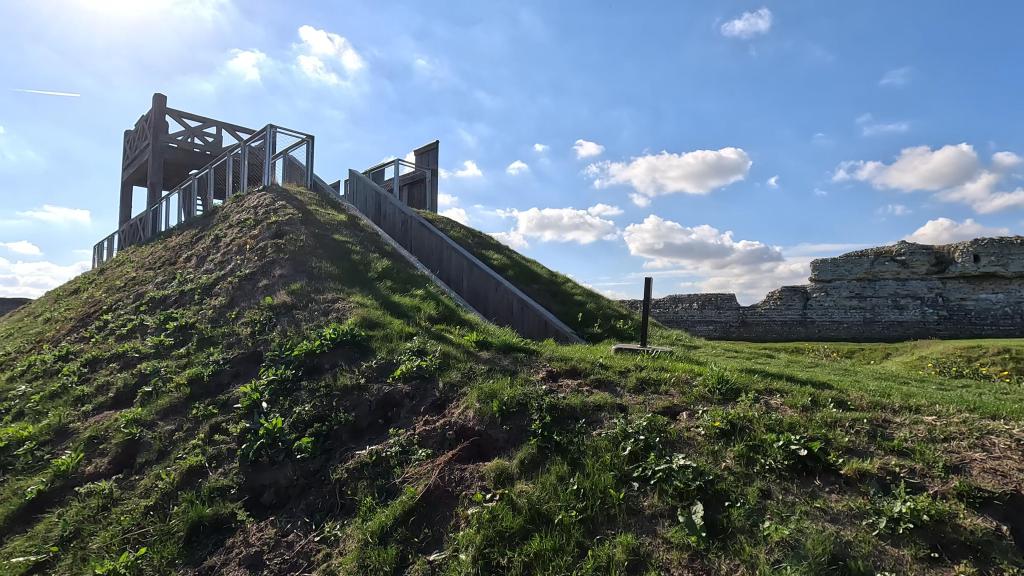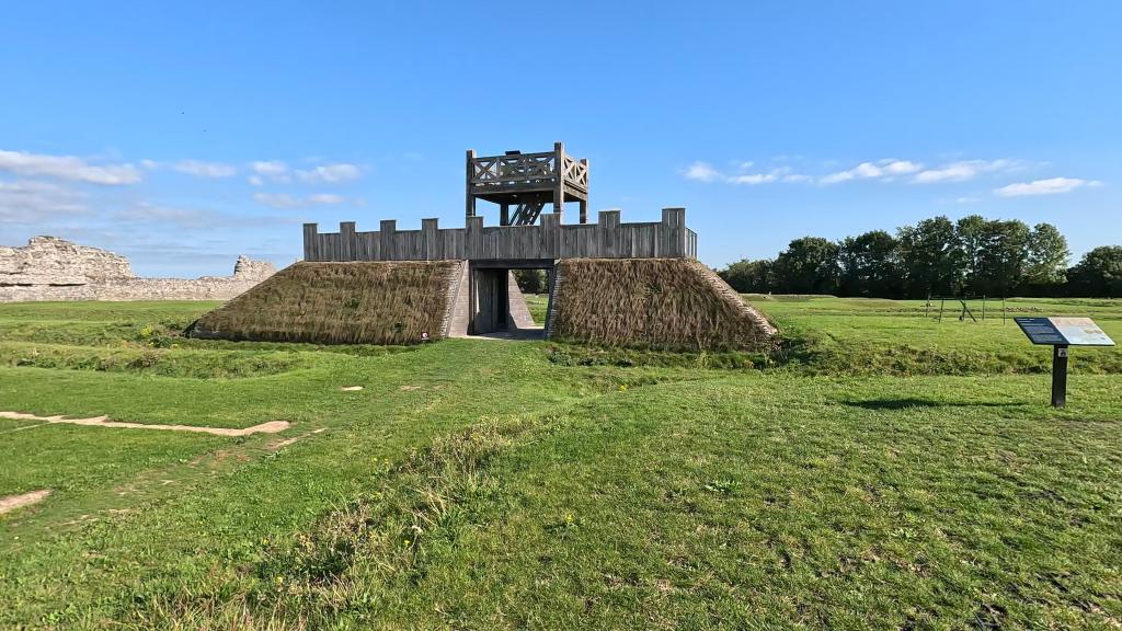 The Roman invasion was a major milestone in in history. It’s known that Richborough witnessed over 360 years of Roman rule-from the very beginning to the bitter end-but being able to step inside, around and atop this eight-metre-high gateway reconstruction, you can look out and just imagine what the first Romans might have seen, its quite the experience. This gateway reconstruction has been built on the found foundations of the original timber gate and tower first built on the site. The newly built gatehouse is eight metres tall, built in oak using roman woodworking techniques and handmade nails, its thought to be based on a column in Rome.