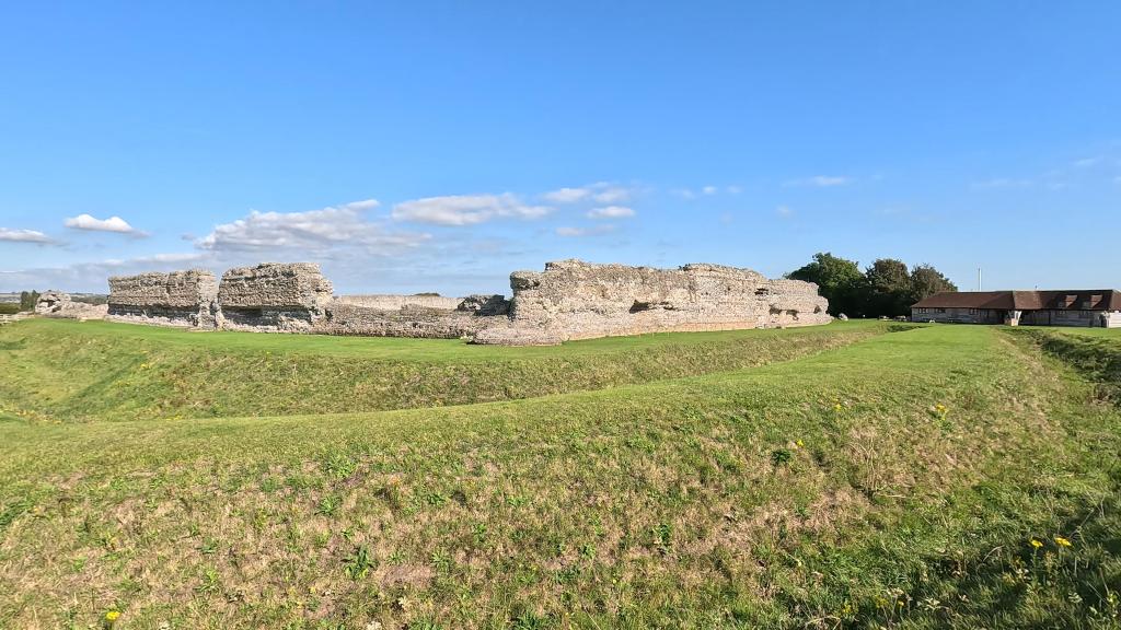The town of Richborough now rests two miles inland on the marshes, but in roman times it was once a small island at the southern end of the important Wantsum sea channel, which would divide the Isle of Thanet from Kent. Incredibly its thought that the roman emperor Claudius’s invading force of 40,000 men would land here in AD43 which of course would have been a complex and monumental military operation. The army would quickly build a defensive barrier across the island in the form of two deep, parallel V shaped ditches with a rampart on the seaward side that ran for at least 650 metres in line with the coastline. The fortification would have defended the invasion beachhead giving that all important protection to troops, ships and supplies.