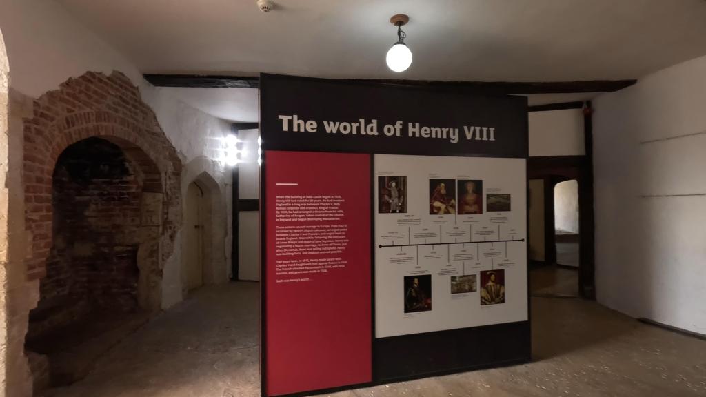 Walking up and around the keep there are a lot of interactive exhibits for both children and adults in this part of the castle, you can sit on the thrones and learn about the history of the castle through headphones, or various puzzles and a fantastic colour map which explains how Henry VIII prepared for invasion from the other countries in Europe. There was a part in the first floor of the original Tudor castle; it’s thought that the sunken floor next to the fireplace may have held bellows used to forge weapons and armour.