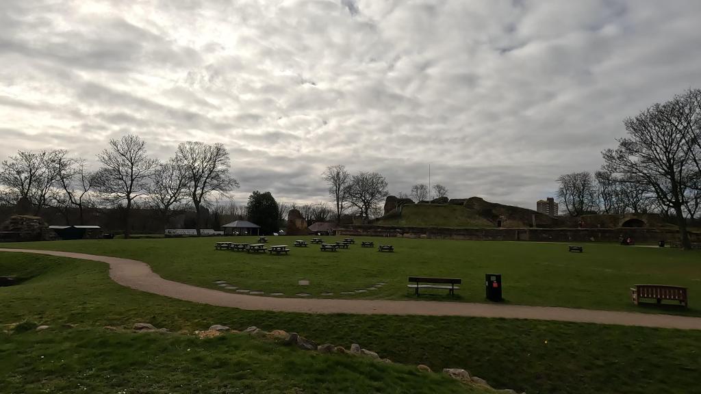 The first castle was a simple motte-and-bailey structure: a high mound of earth with a timber palisade surrounded by an outer timber wall. Evidence of the massive kitchens, including a bakery and ovens, indicates how busy the castle would have been. Surviving parts today include the Piper’s Tower postern gate, foundations of the chapel (dedicated to St. Clement), the inner and outer baileys, the quatrefoil-designed donjon, and 11th-century cellars used as prisons during the Civil War.