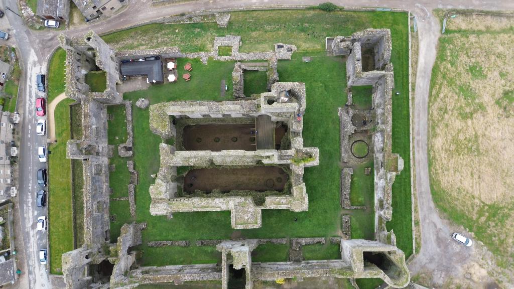 The motte is believed to have stood about 12 meters high and was surrounded by a ditch 6 meters wide. You can still see the remains of the motte and ditch today when looking out from the battlements. The transition to a stone castle commenced in the late 12th century, marked by the construction of the great tower. Archaeologists determined this date based on carved stones in the northeast chapel that depict a “waterleaf” design, a style used elsewhere in Yorkshire during that period. The Norman Keep was designed with walls 14 feet thick at the base, standing around 66 feet high, and contained a great chamber, kitchen, chapel, and cellars.