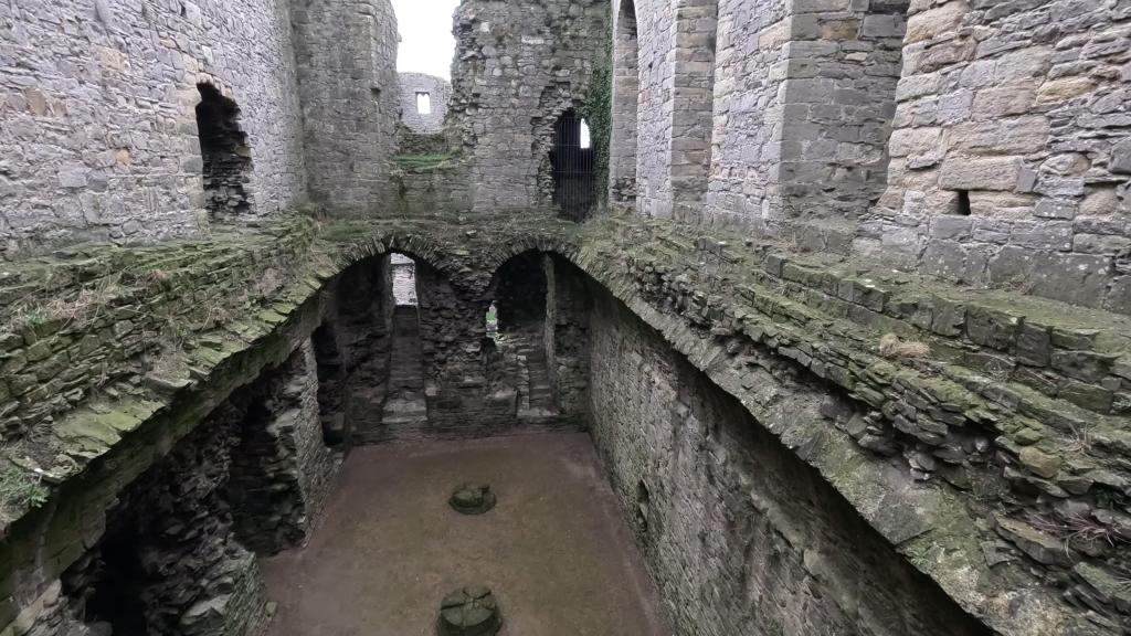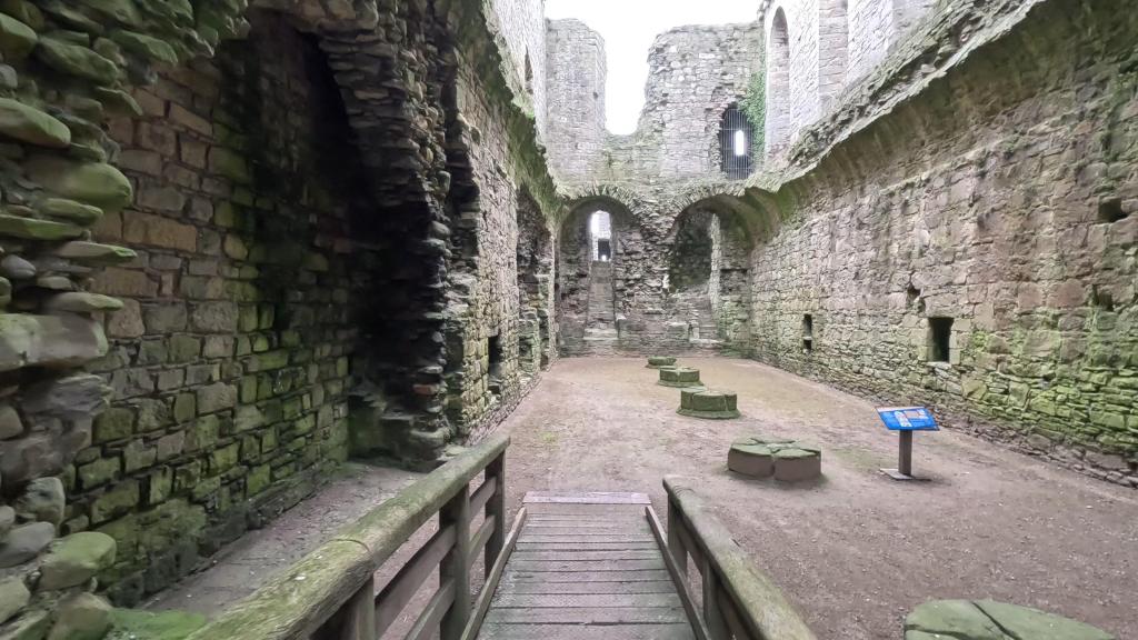 Inside the keep, a central spine wall divided the interior. The ground floor housed the vaulted cellars and kitchens, while the first floor contained the Great Hall—a stage for feasts and court proceedings—and the lord’s private solar. The 15th century saw modifications like vertical windows to increase natural light. Outside the keep, within the outer ward, domestic buildings provided accommodation for servants and staff. Interestingly, you can still see an unusual horse mill to the west of the bakehouse, which was later used in the 19th century to grind stone into sand for cleaning floors in the town.