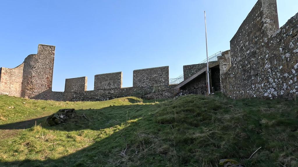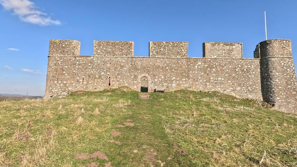 Hume Castle eventually fell to Oliver Cromwell’s forces in the 17th century as part of his campaign to destroy Border fortresses. However, the structure we see today is largely the result of 18th-century romanticism. In 1789, Hugh Hume, the Earl of Marchmont, restored the ruins as a picturesque folly. He built the high curtain wall with exceptionally large crenellations specifically so the castle would be easily visible from his mansion, Marchmont House, eight miles away.