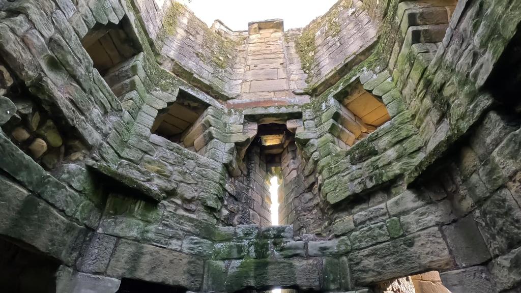 The architectural brilliance of Warkworth is best seen in the Great Tower, or keep. Built in the late 14th century, its distinctive plan is that of a Greek cross—a square with projecting polygonal lobes. This innovative design allowed for both formidable defense and luxurious accommodation. Internally, the rooms are arranged around a central light well that also served to collect rainwater for the basement holding tanks—a significant medieval luxury.
