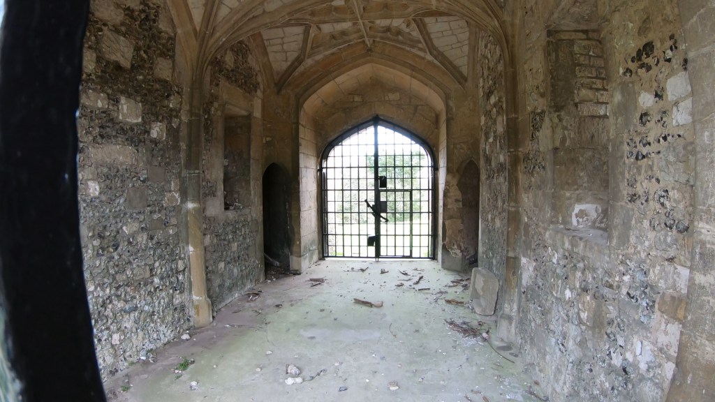 While the curtain walls were destroyed, their foundations have been rebuilt to two feet high, allowing you to clearly trace the original layout. You can still see the red brick patches on the gatehouse towers where cannon fire struck the stone, as well as the wonderful grotesque carvings of grimacing heads along the walls. Peer through the iron grills of the gatehouse passage and you’ll spot a beautiful vaulted ceiling, along with the remains of a first-floor fireplace that likely once graced Sir Richard Abberbury’s private rooms.
